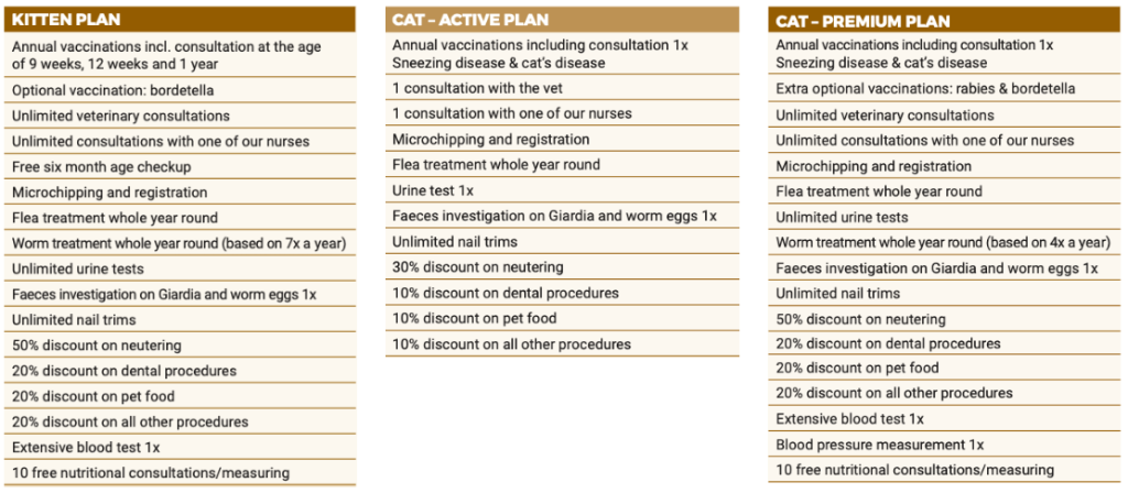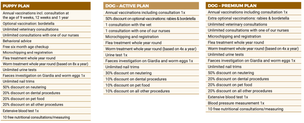 - Puppy & Kitten Plan: specially designed for the first 12 months of your young pet’s life.