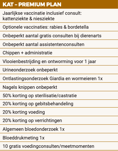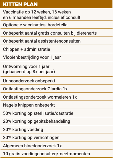 Let op: het Happy Pet Health Plan is geen dierenverzekering. Het is een preventief zorgplan wat wij zelf aan onze cliënten aanbieden en u daarom ook alleen op onze praktijken kunt gebruiken. Met het Happy Pet Health Plan zorgt u ervoor dat uw dier alle juiste preventieve zorg krijgt die hij of zij nodig heeft, en profiteert u van aantrekkelijke kortingen.